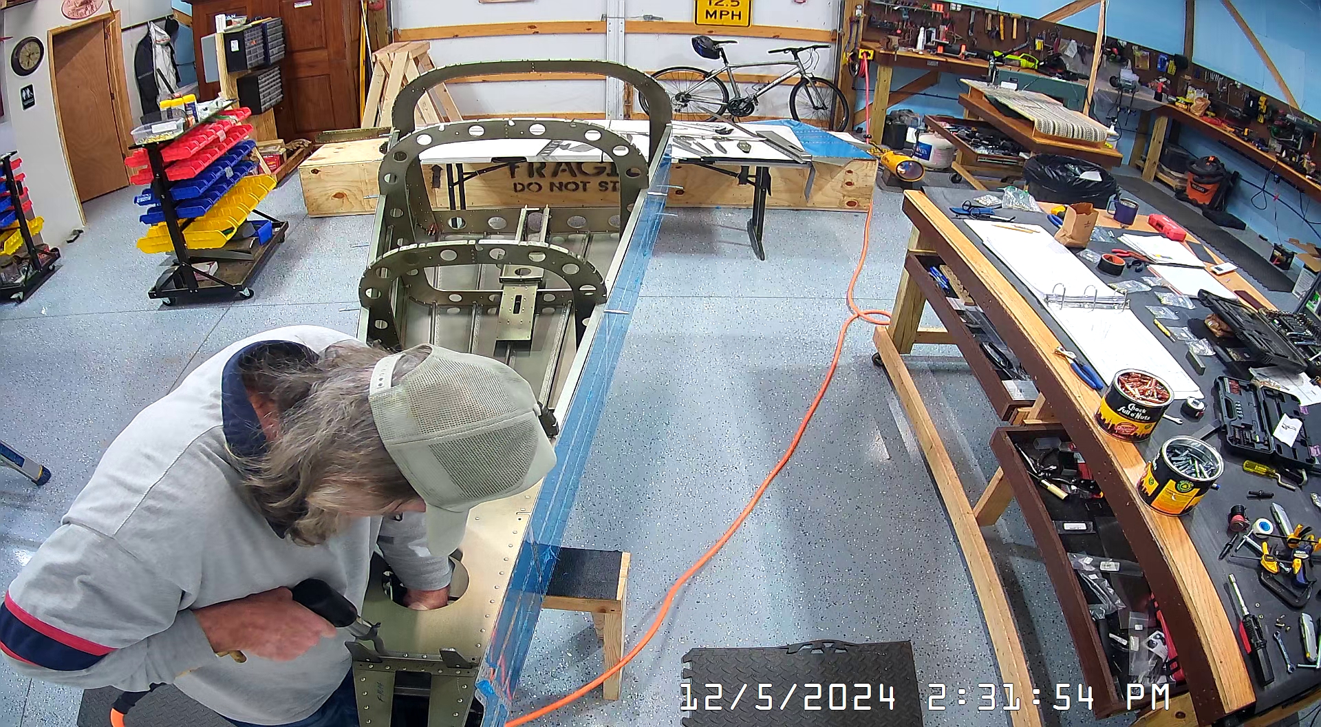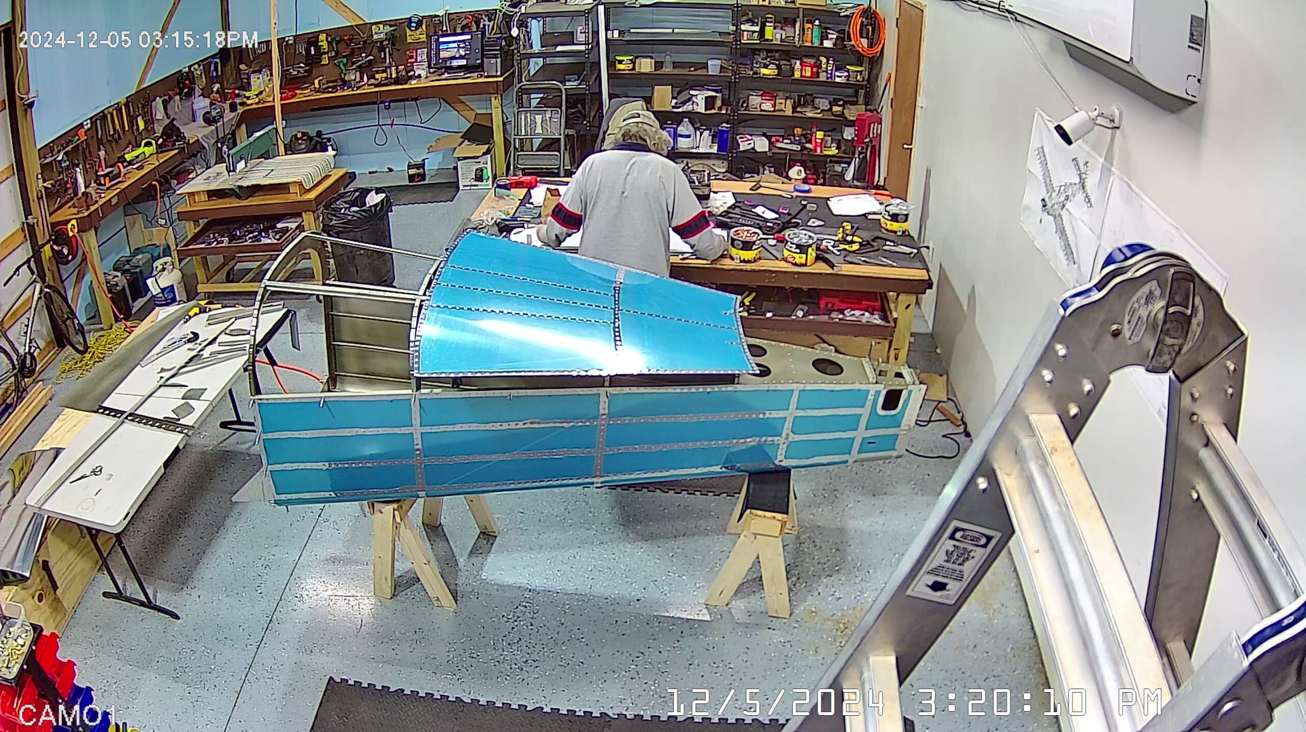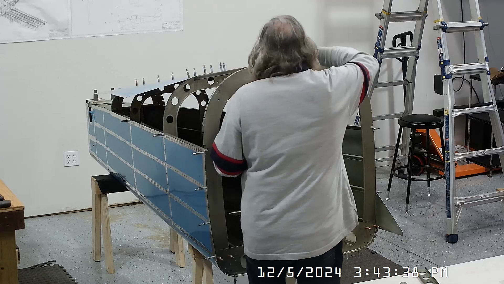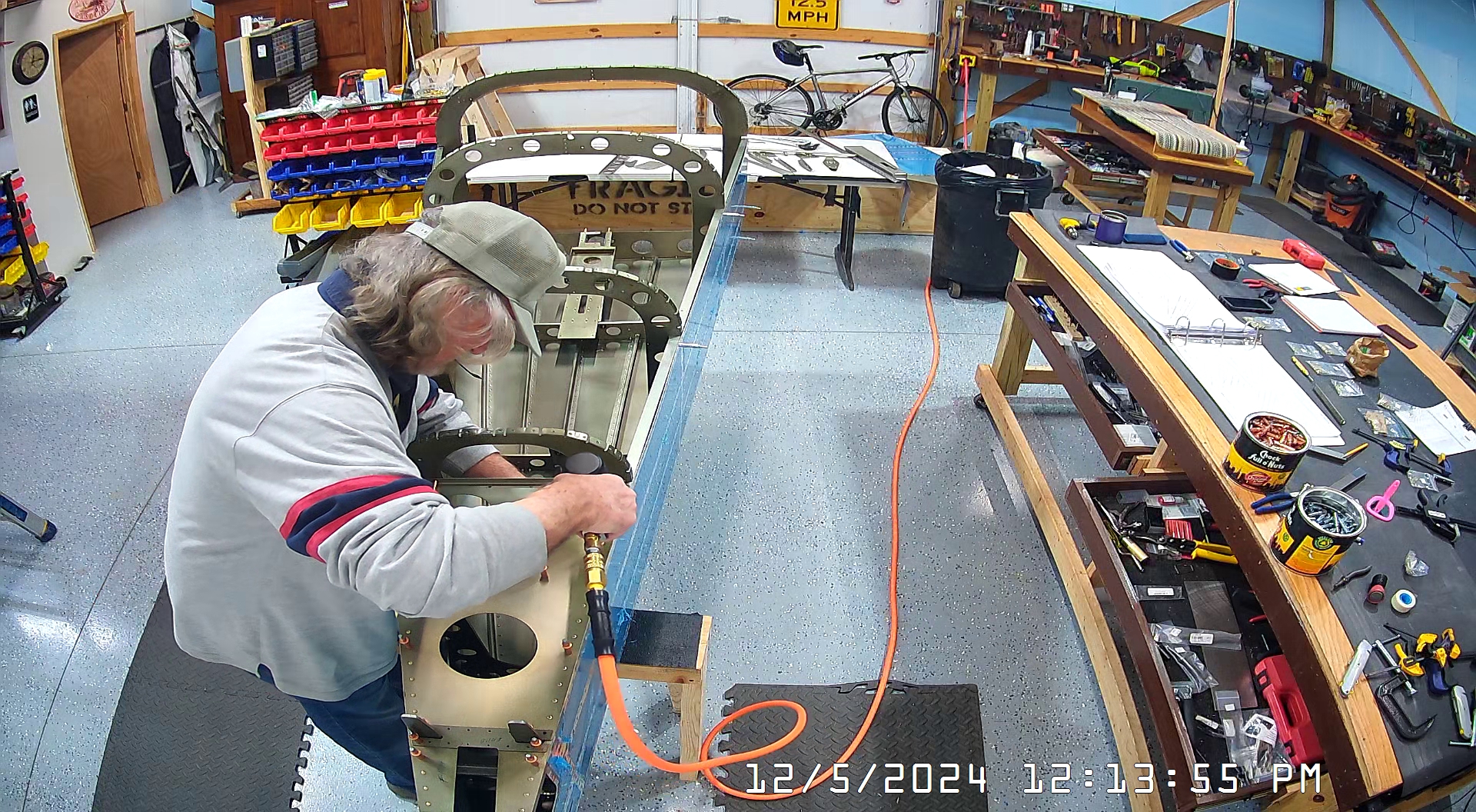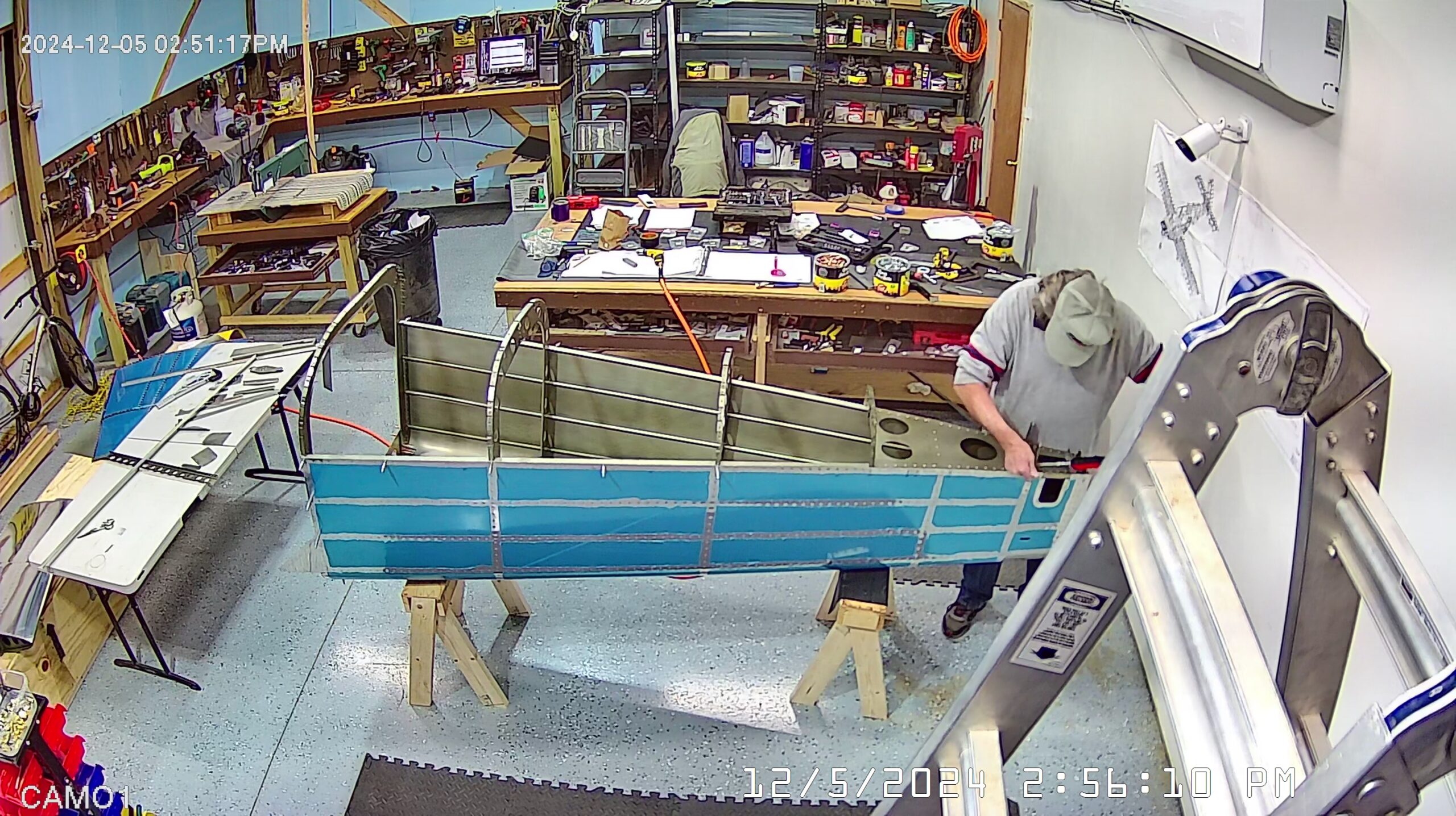 At the end of the day I placed the aft top skin on the frames with a couple of clecos and also had the bellcrank and battery mount installed per the instructions on page 10-23.