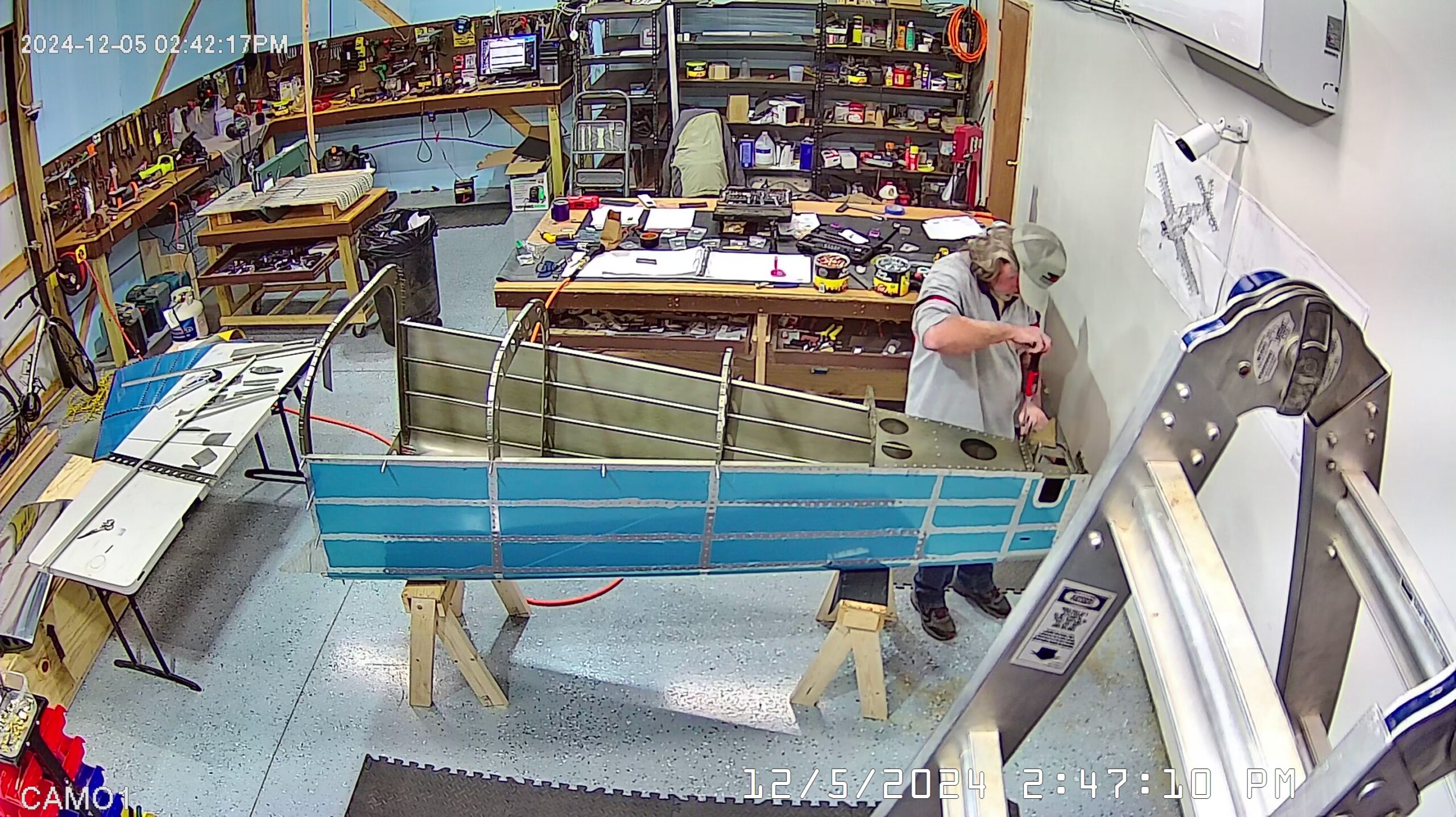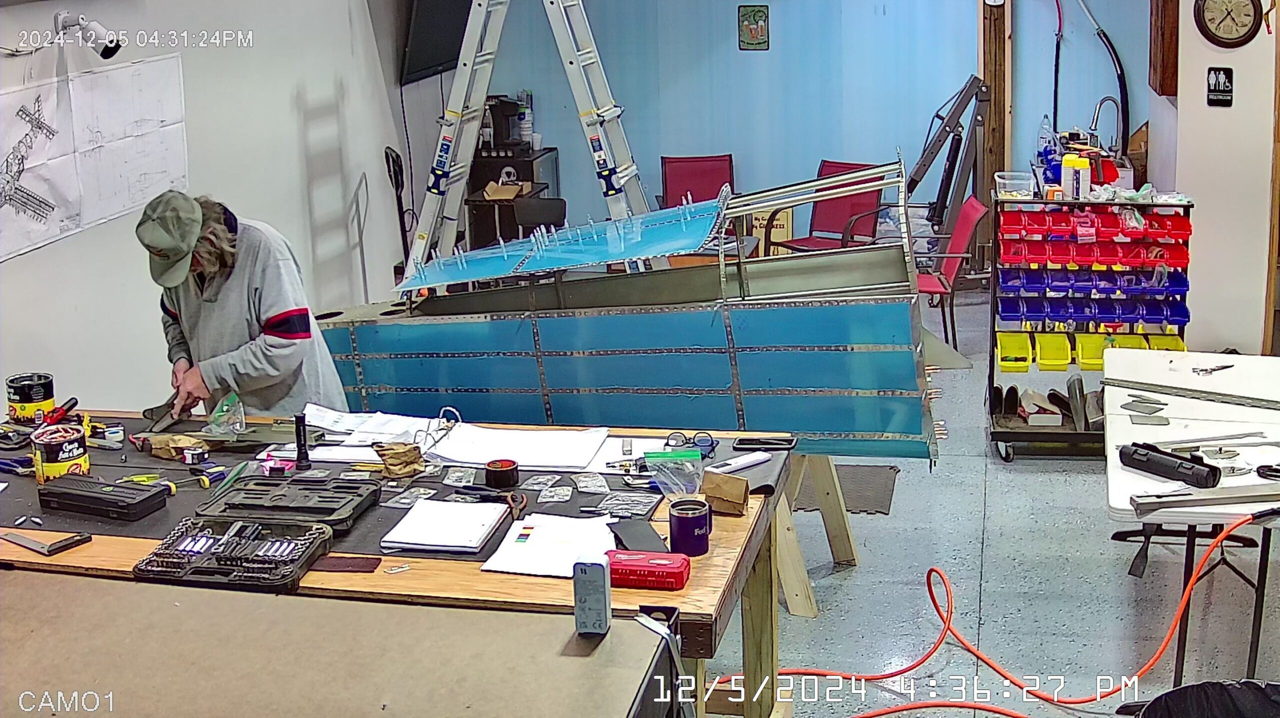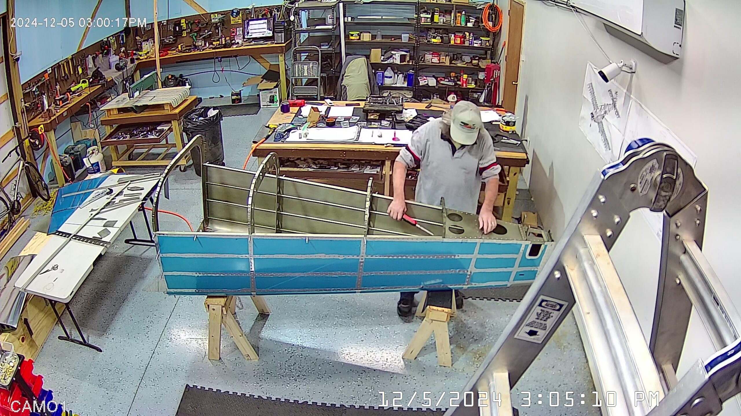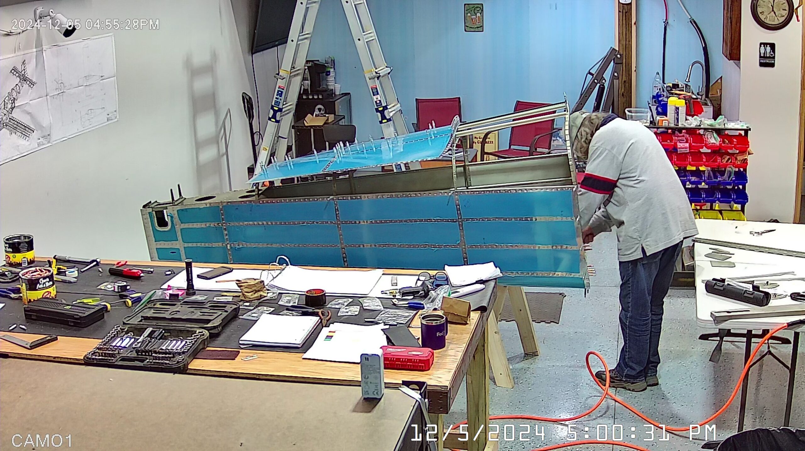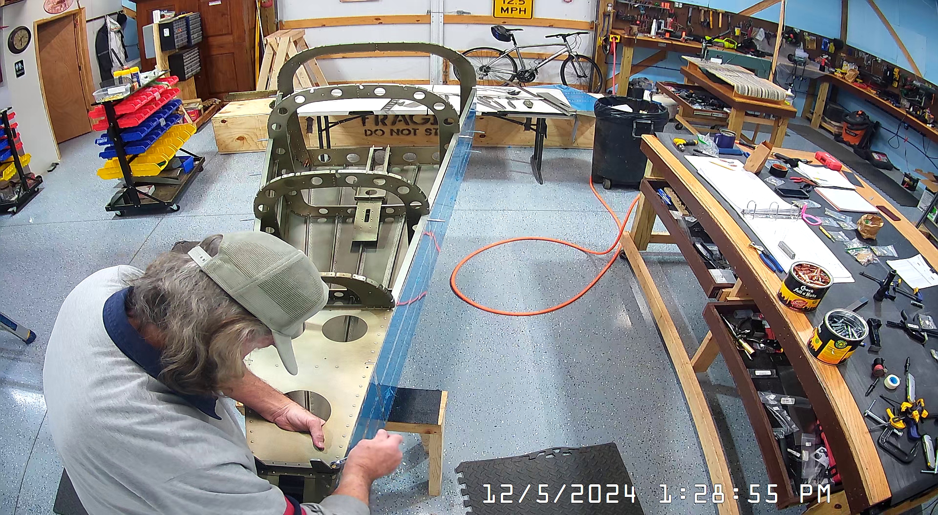 At the end of the day I placed the aft top skin on the frames with a couple of clecos and also had the bellcrank and battery mount installed per the instructions on page 10-23.