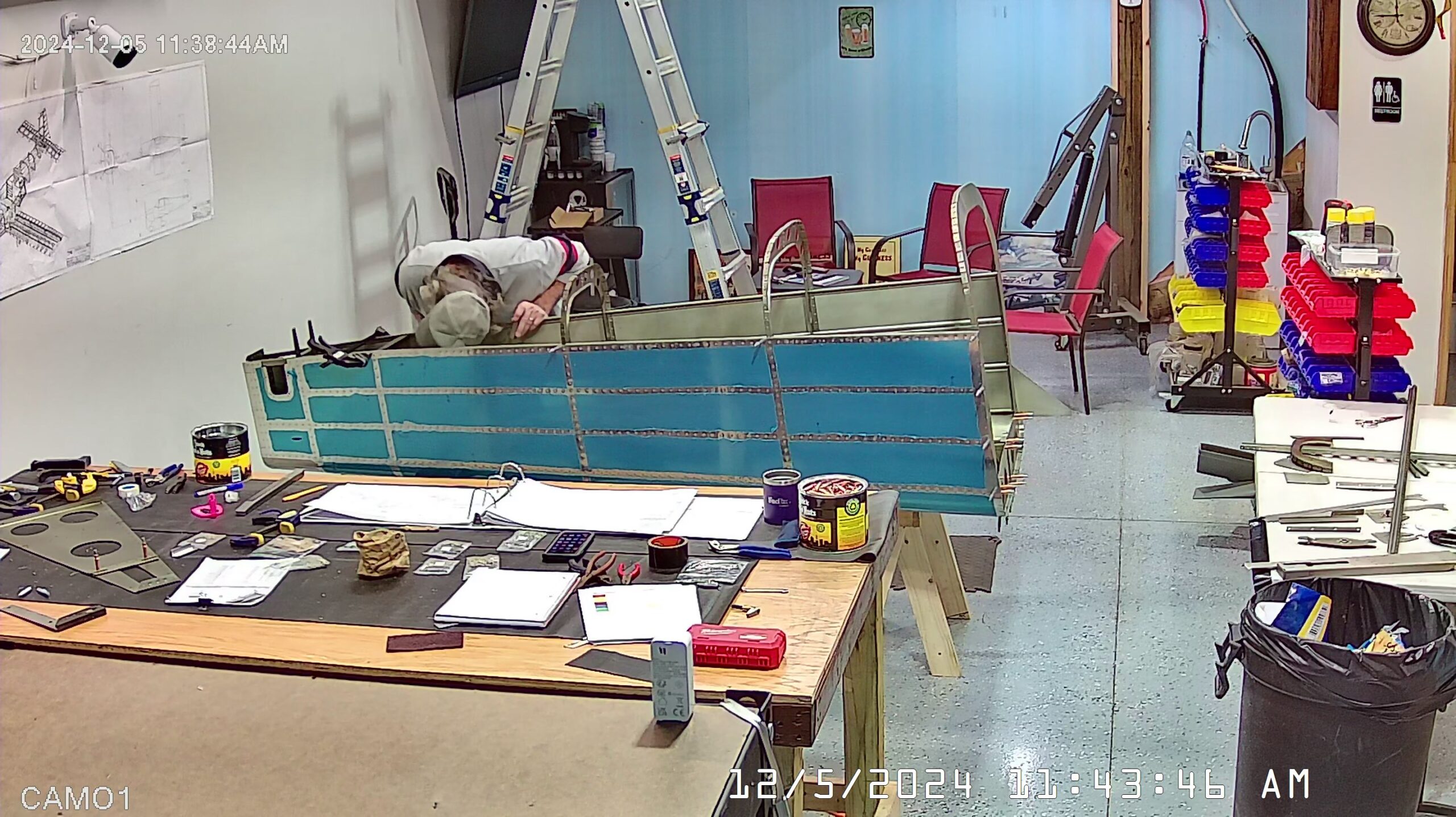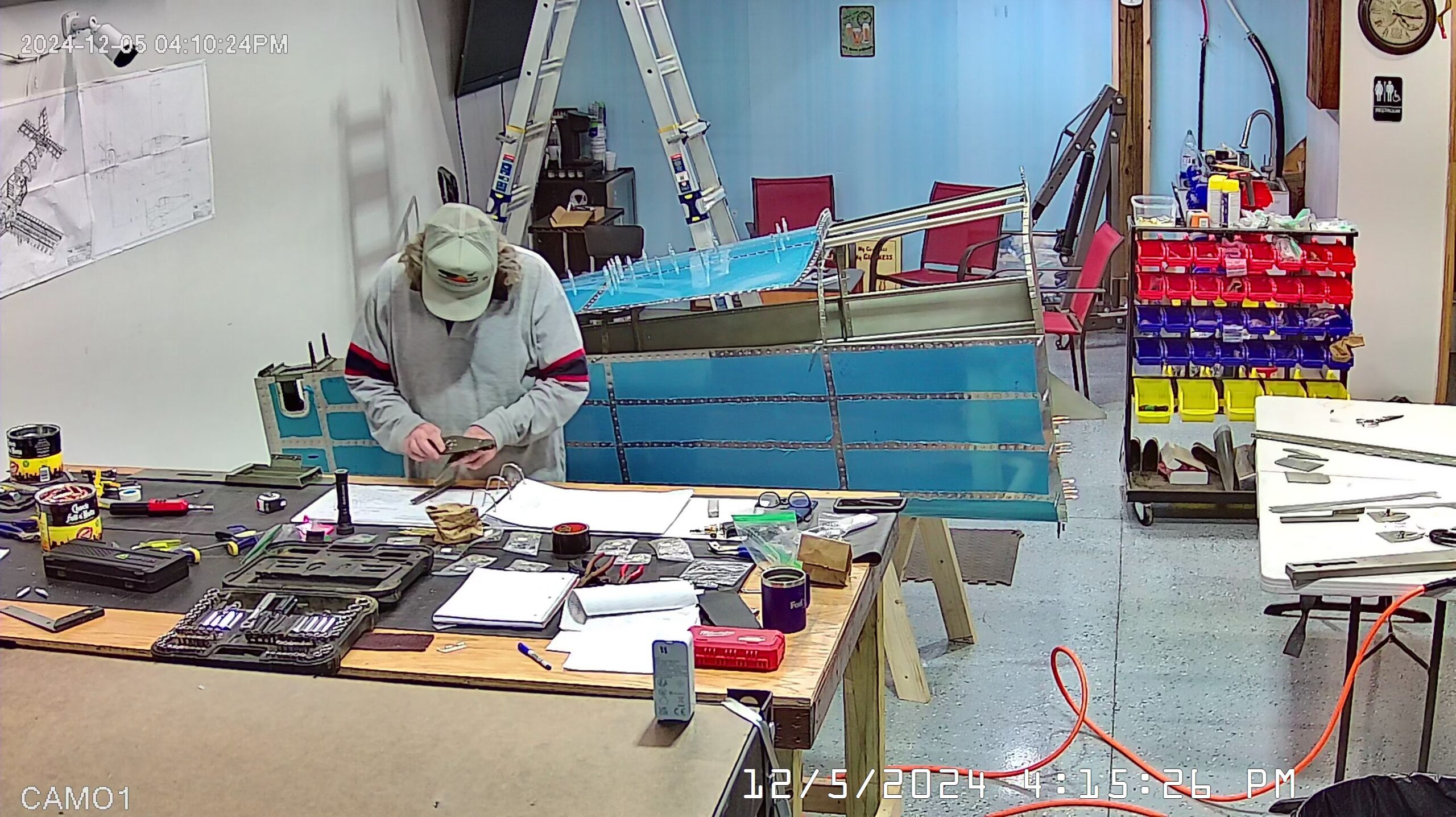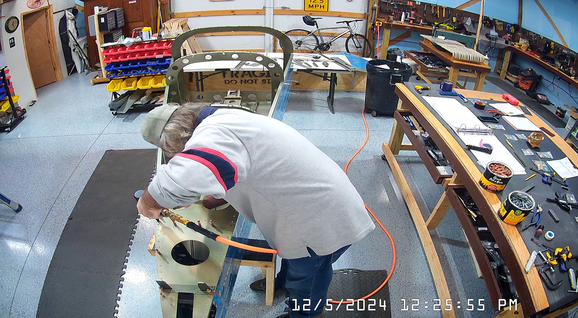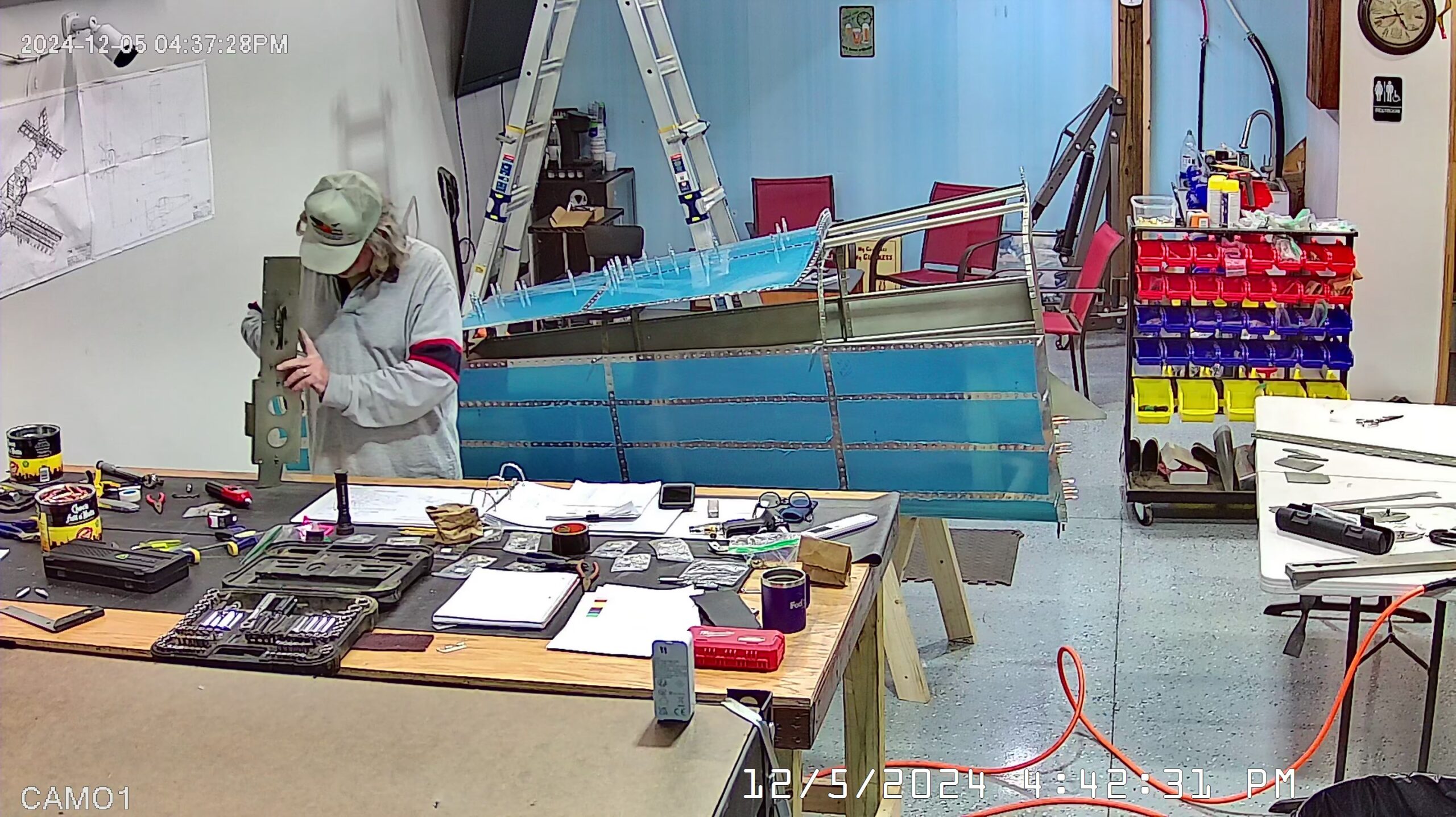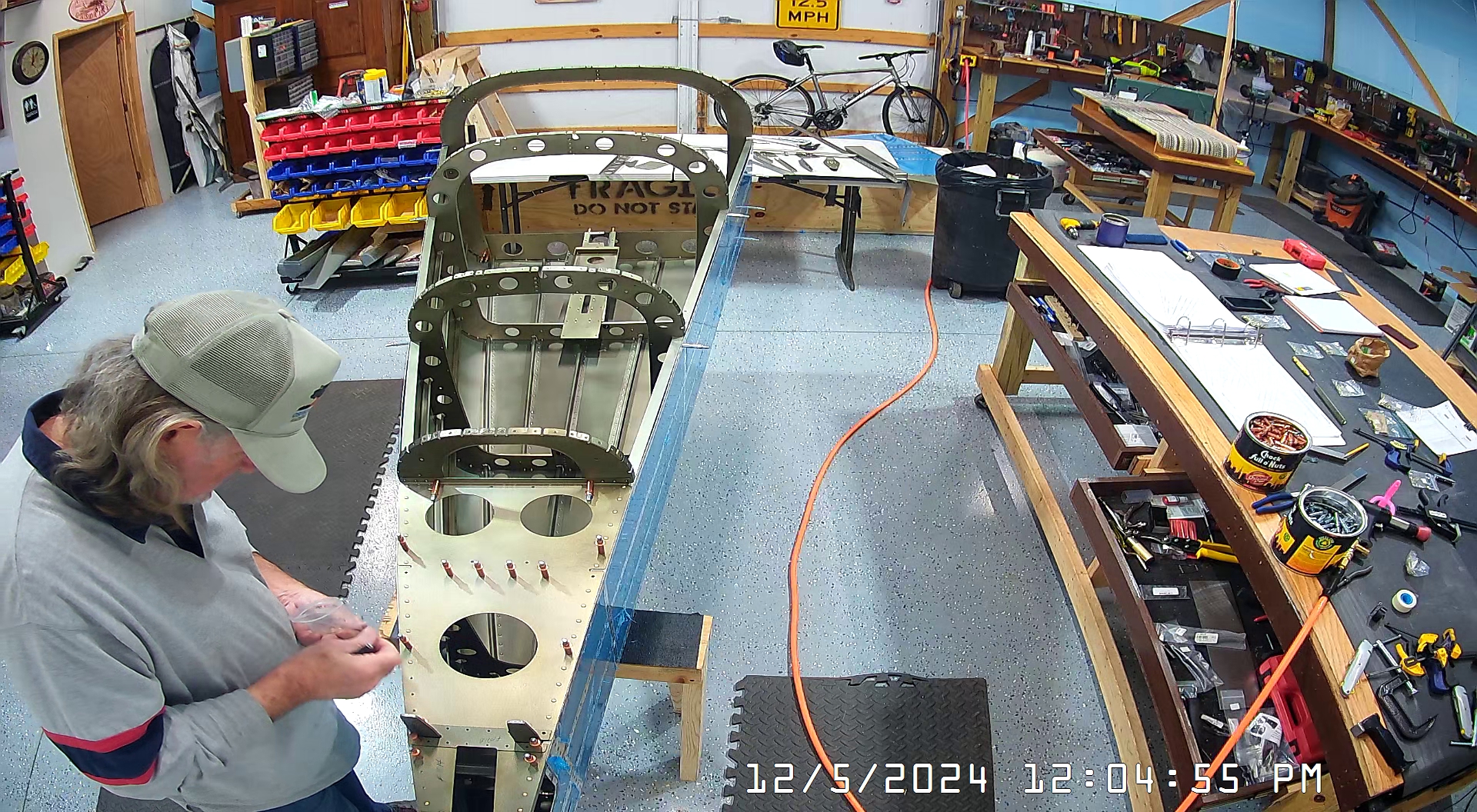 At the end of the day I placed the aft top skin on the frames with a couple of clecos and also had the bellcrank and battery mount installed per the instructions on page 10-23.