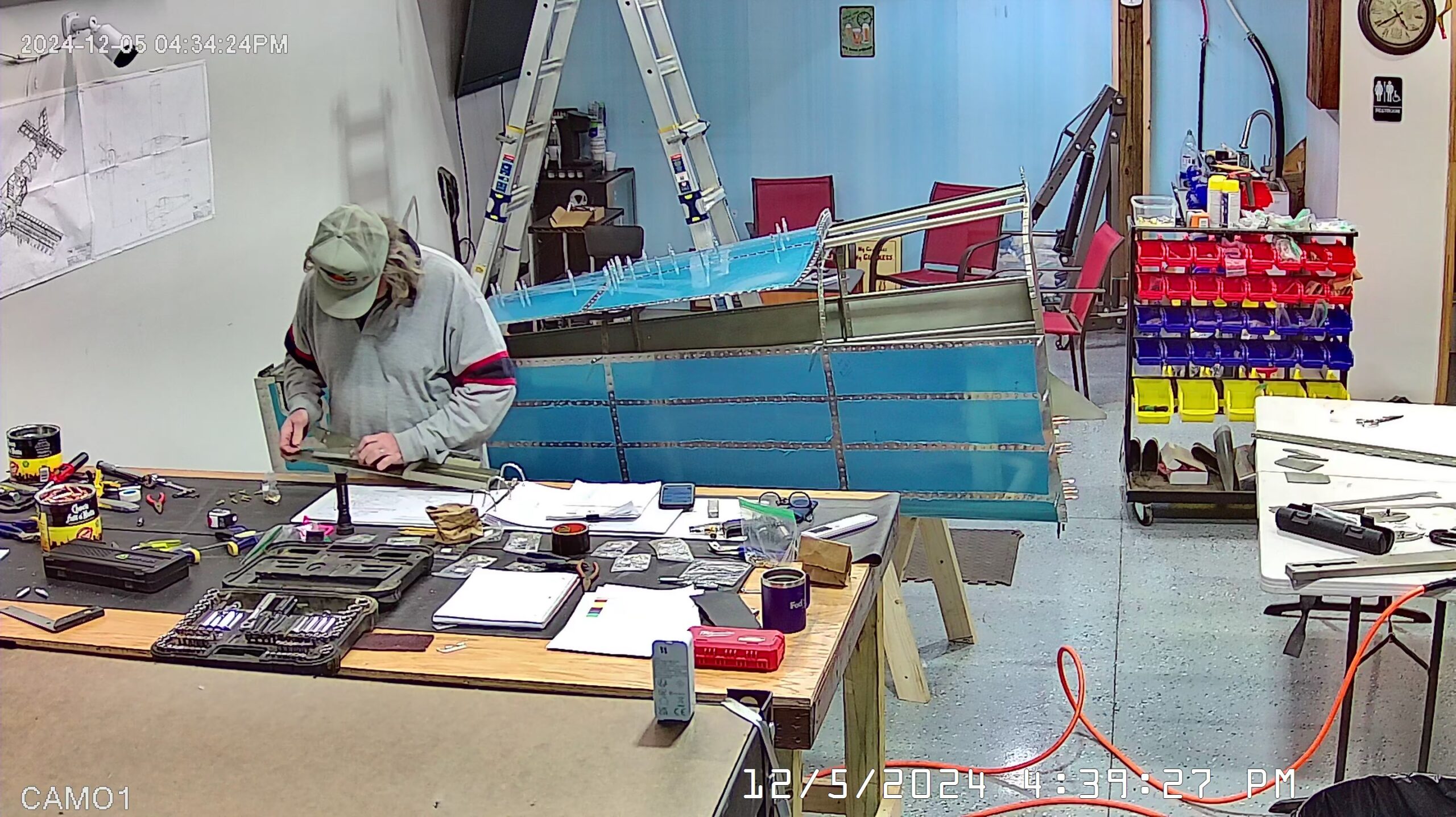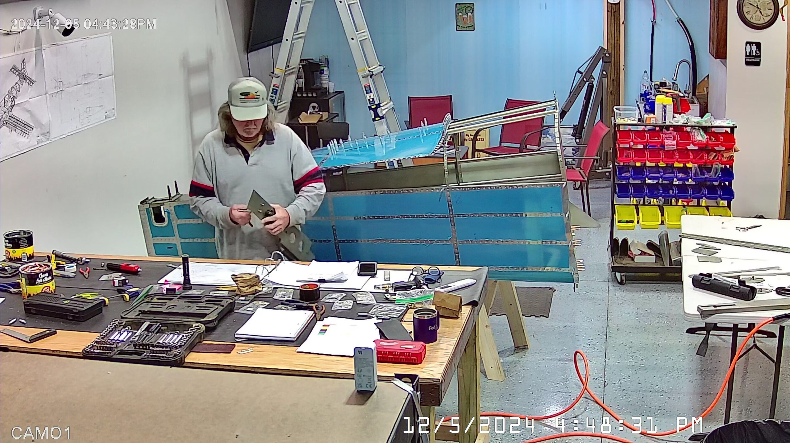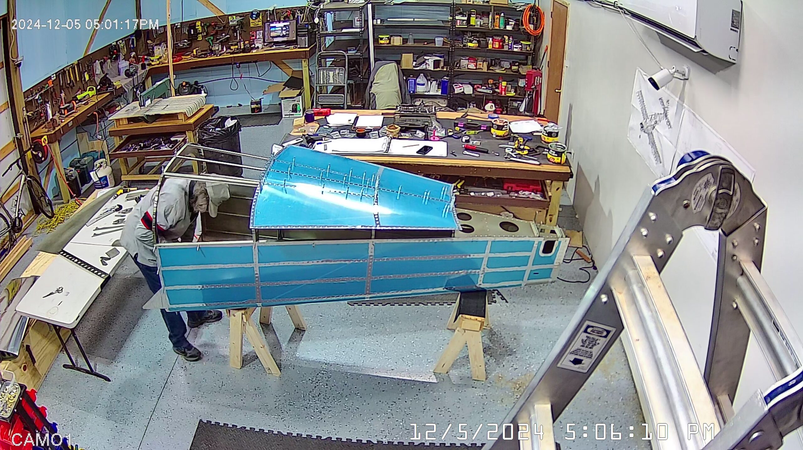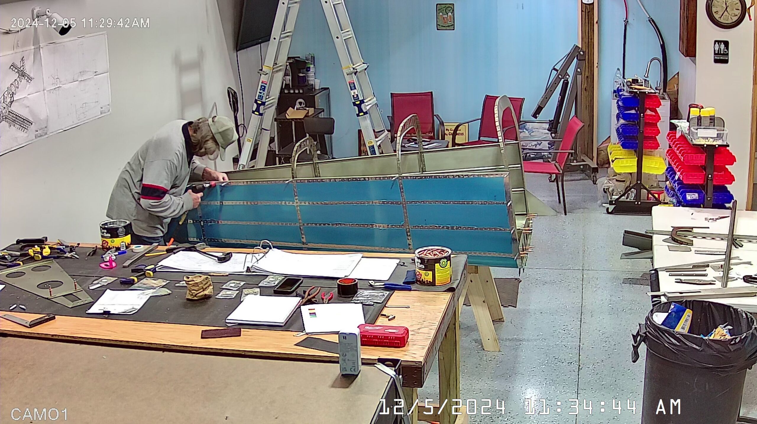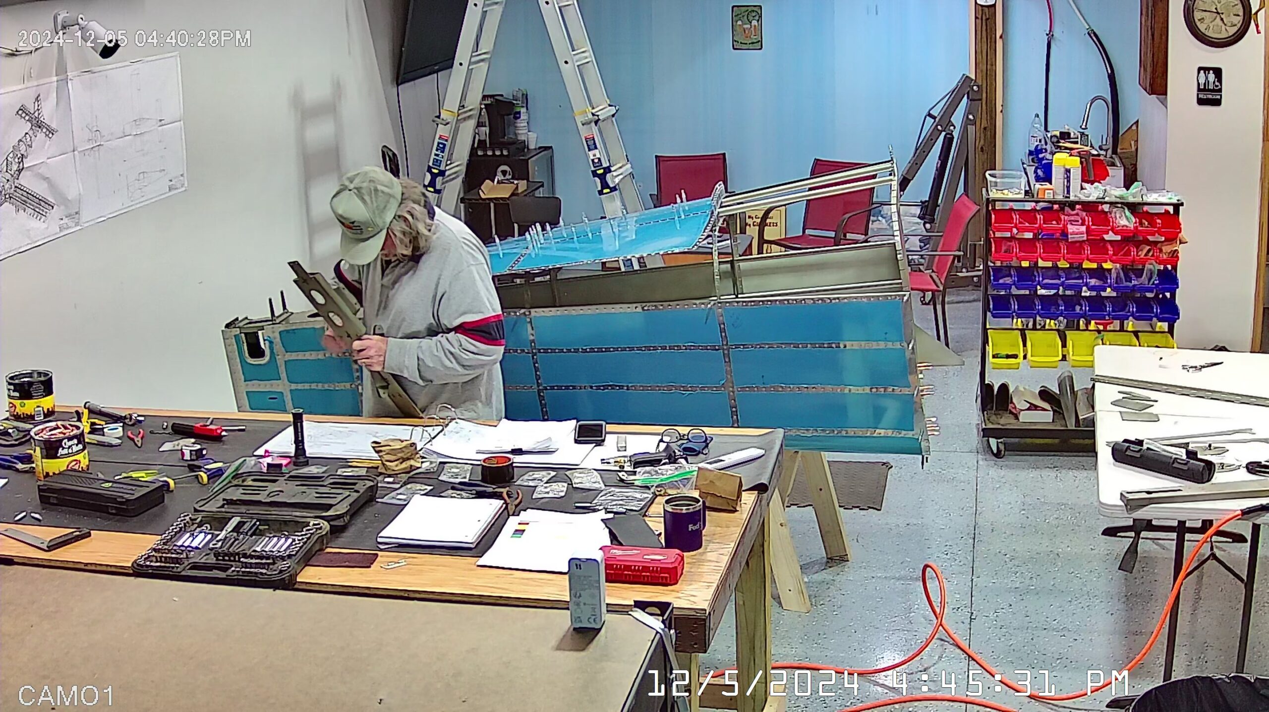 At the end of the day I placed the aft top skin on the frames with a couple of clecos and also had the bellcrank and battery mount installed per the instructions on page 10-23.