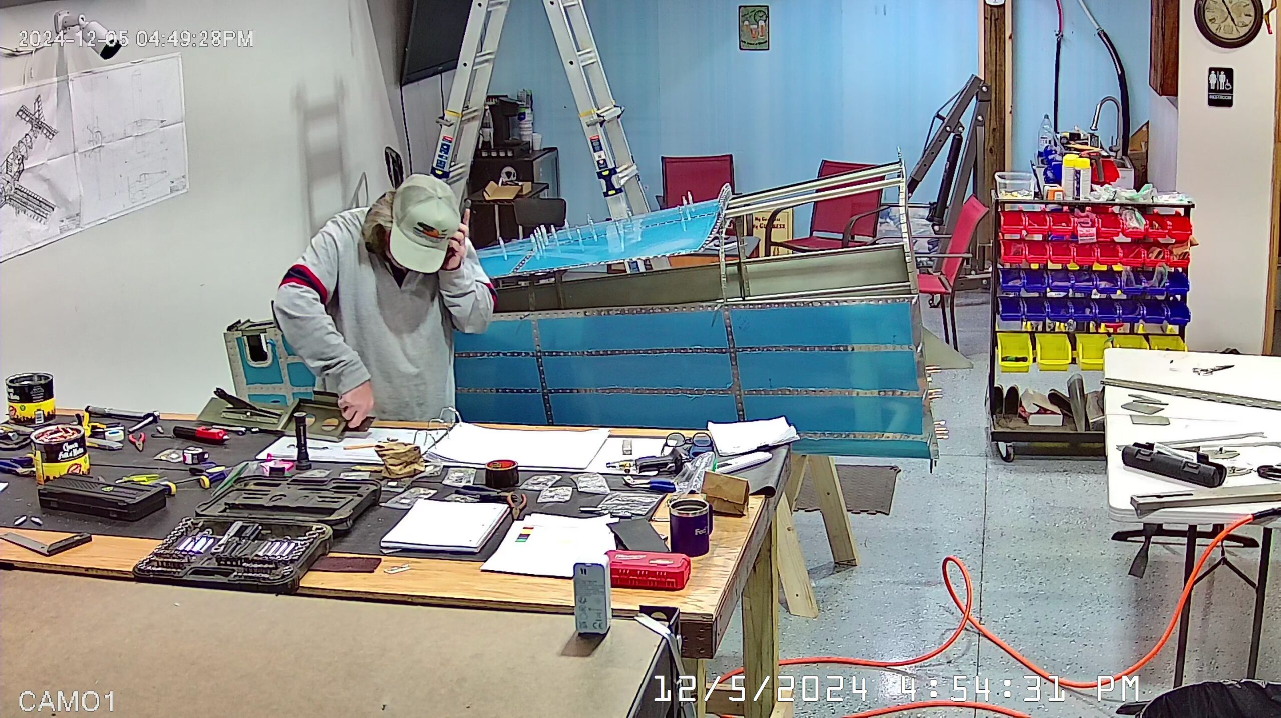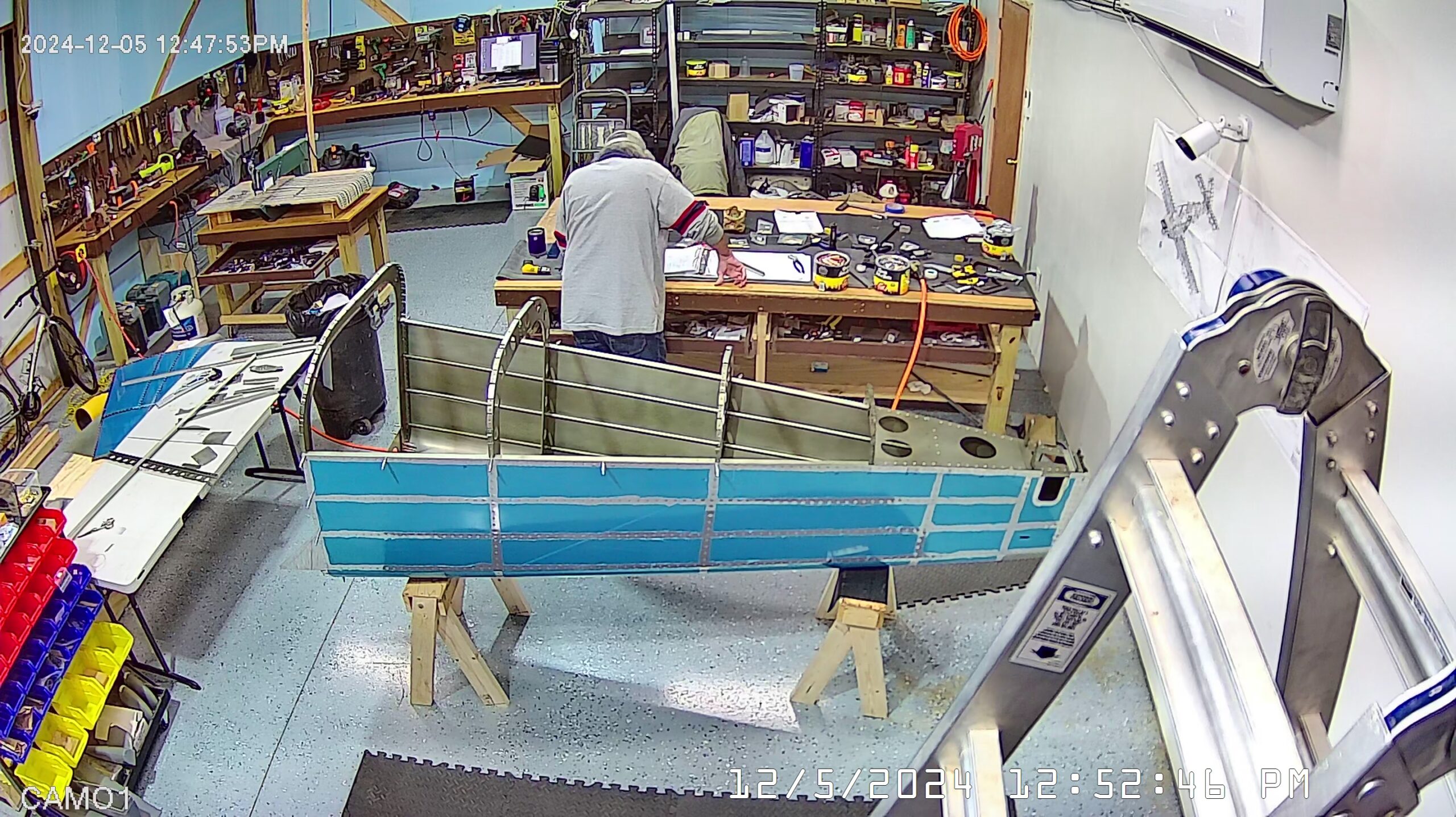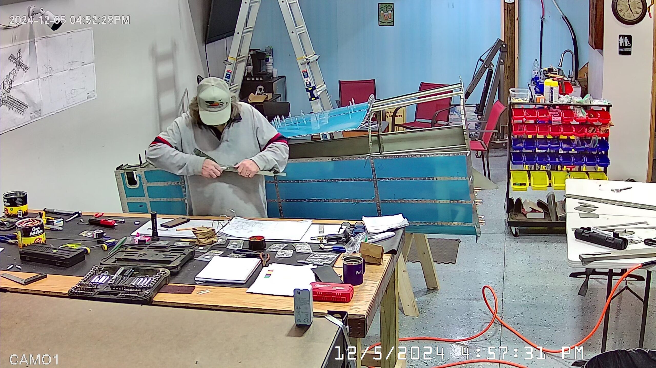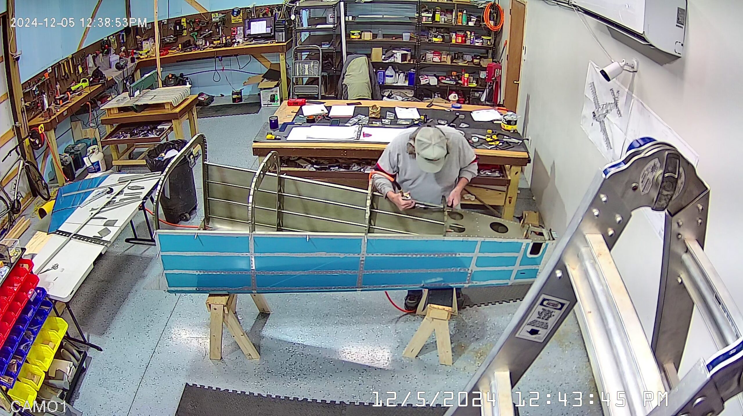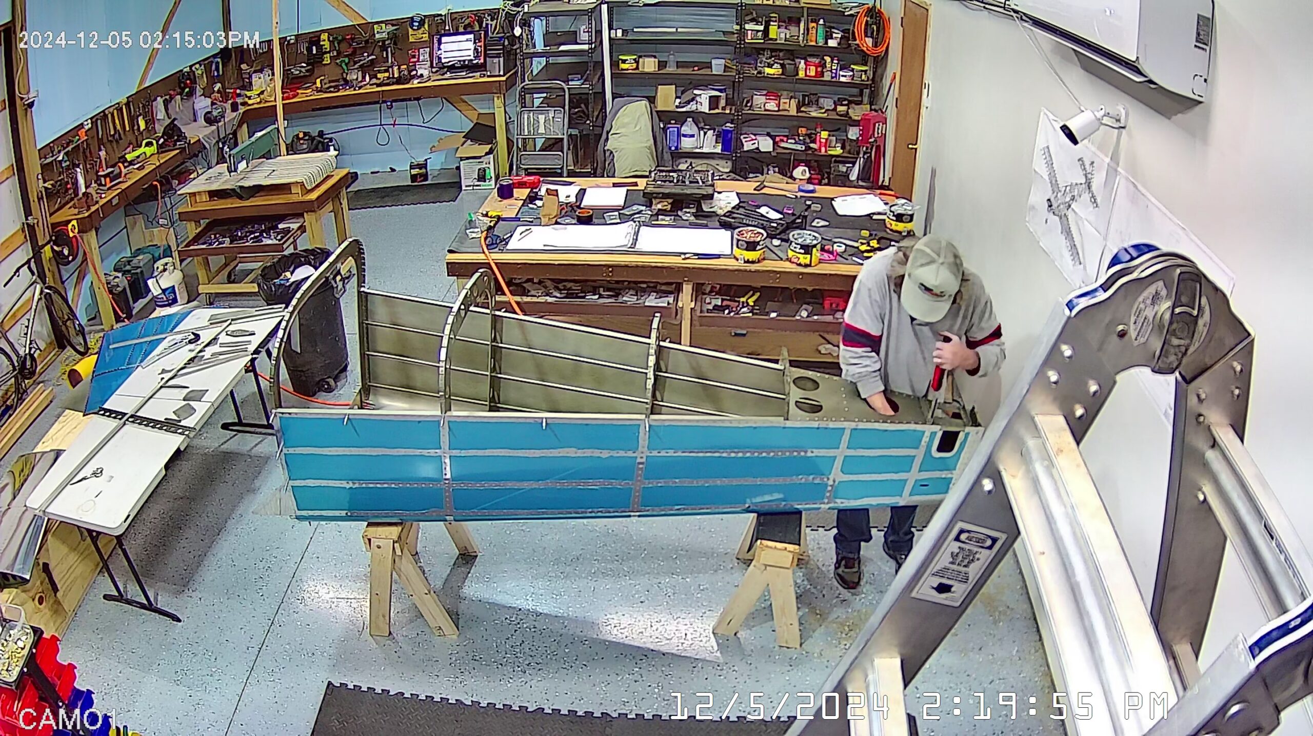 At the end of the day I placed the aft top skin on the frames with a couple of clecos and also had the bellcrank and battery mount installed per the instructions on page 10-23.