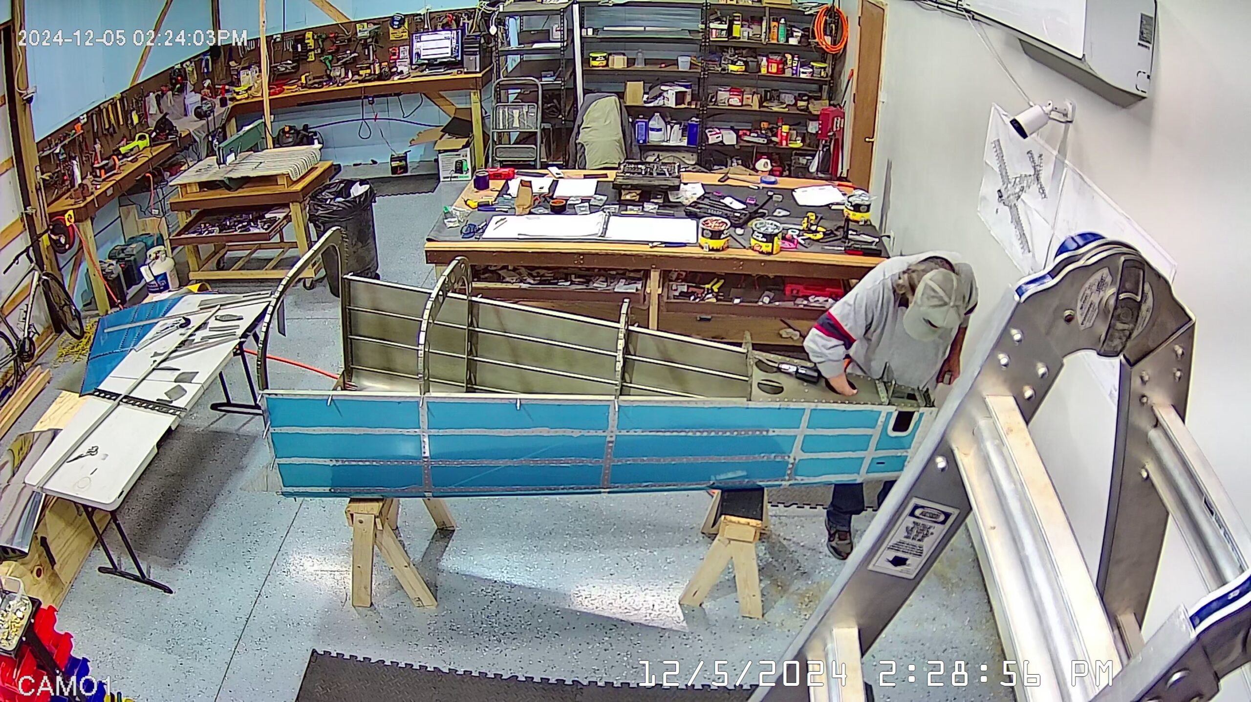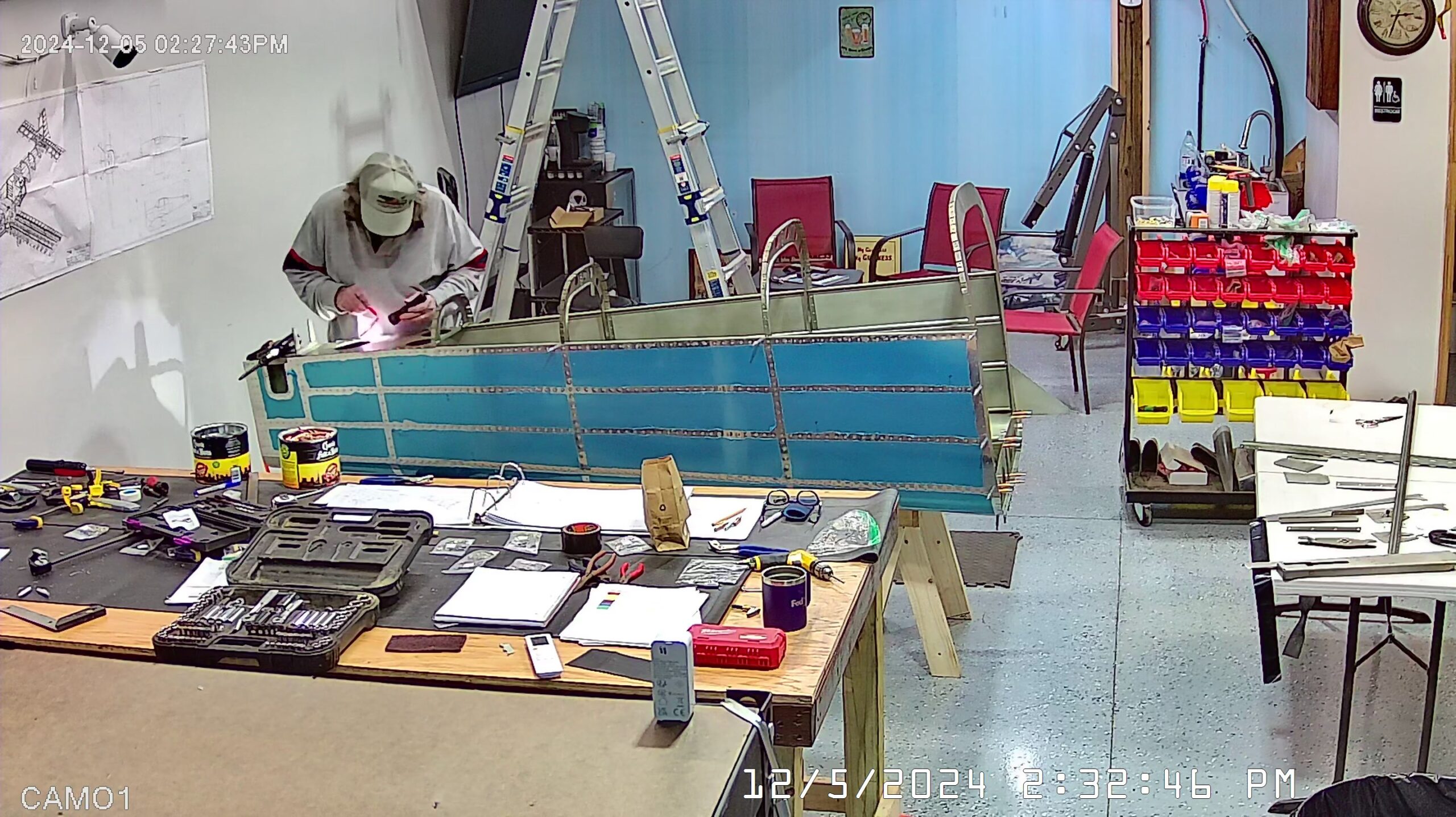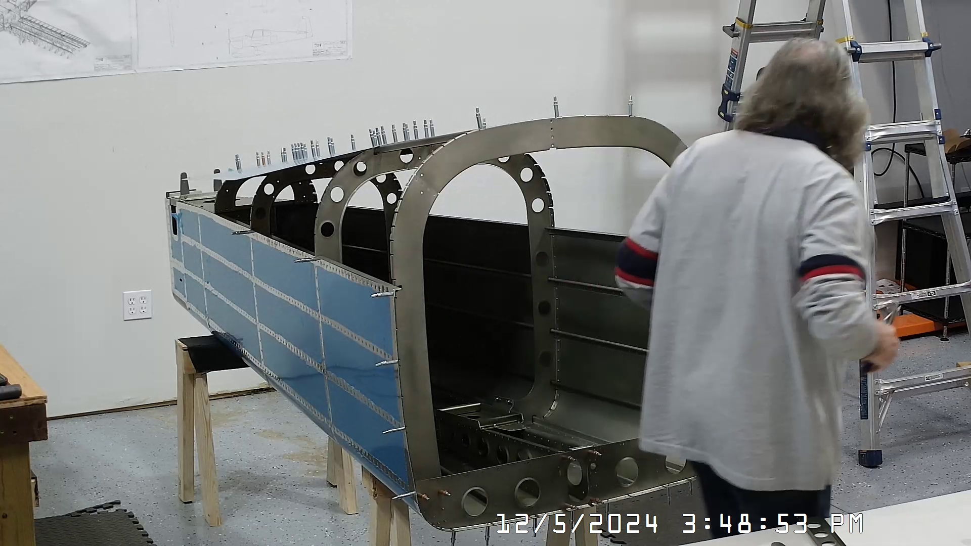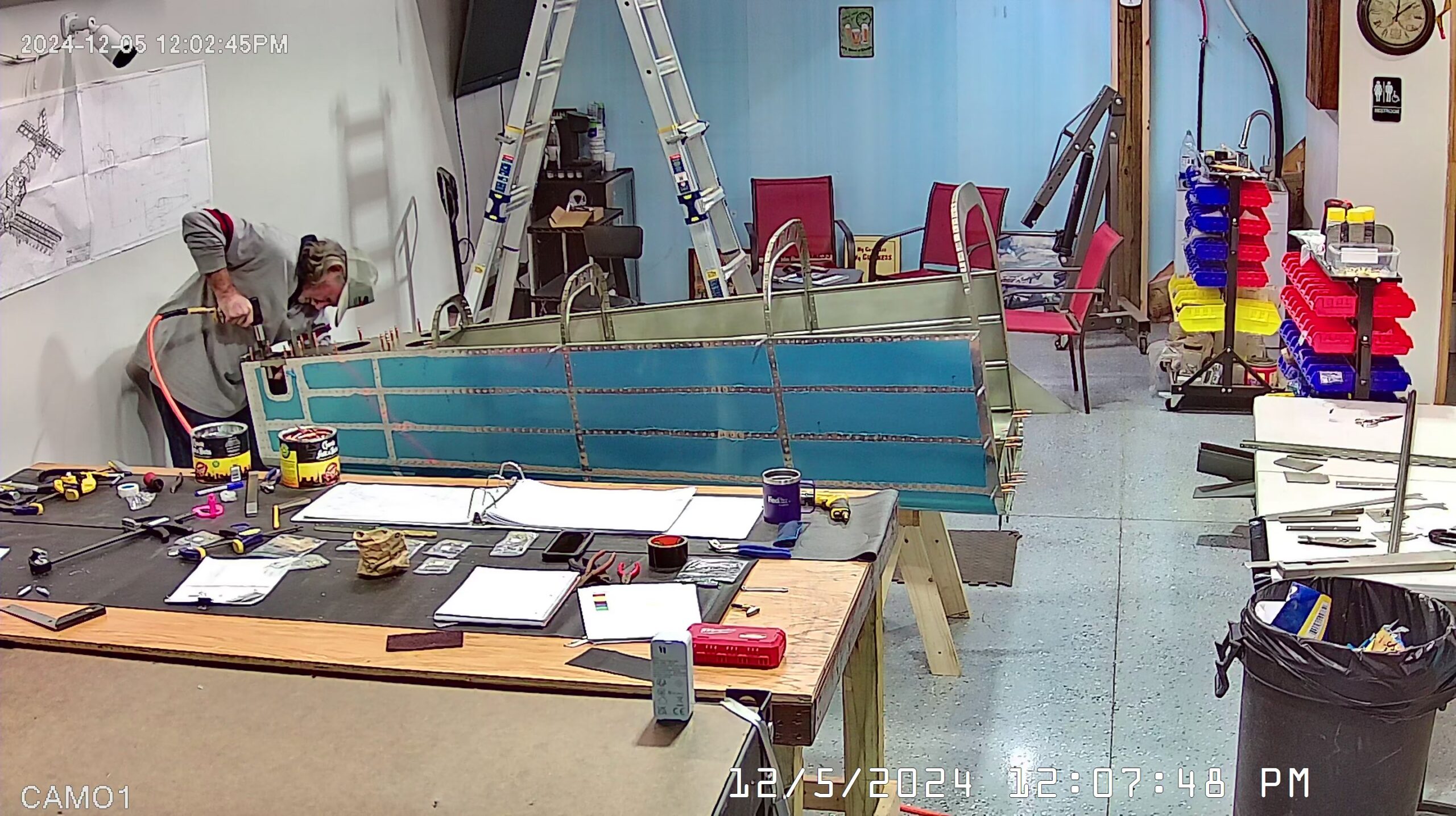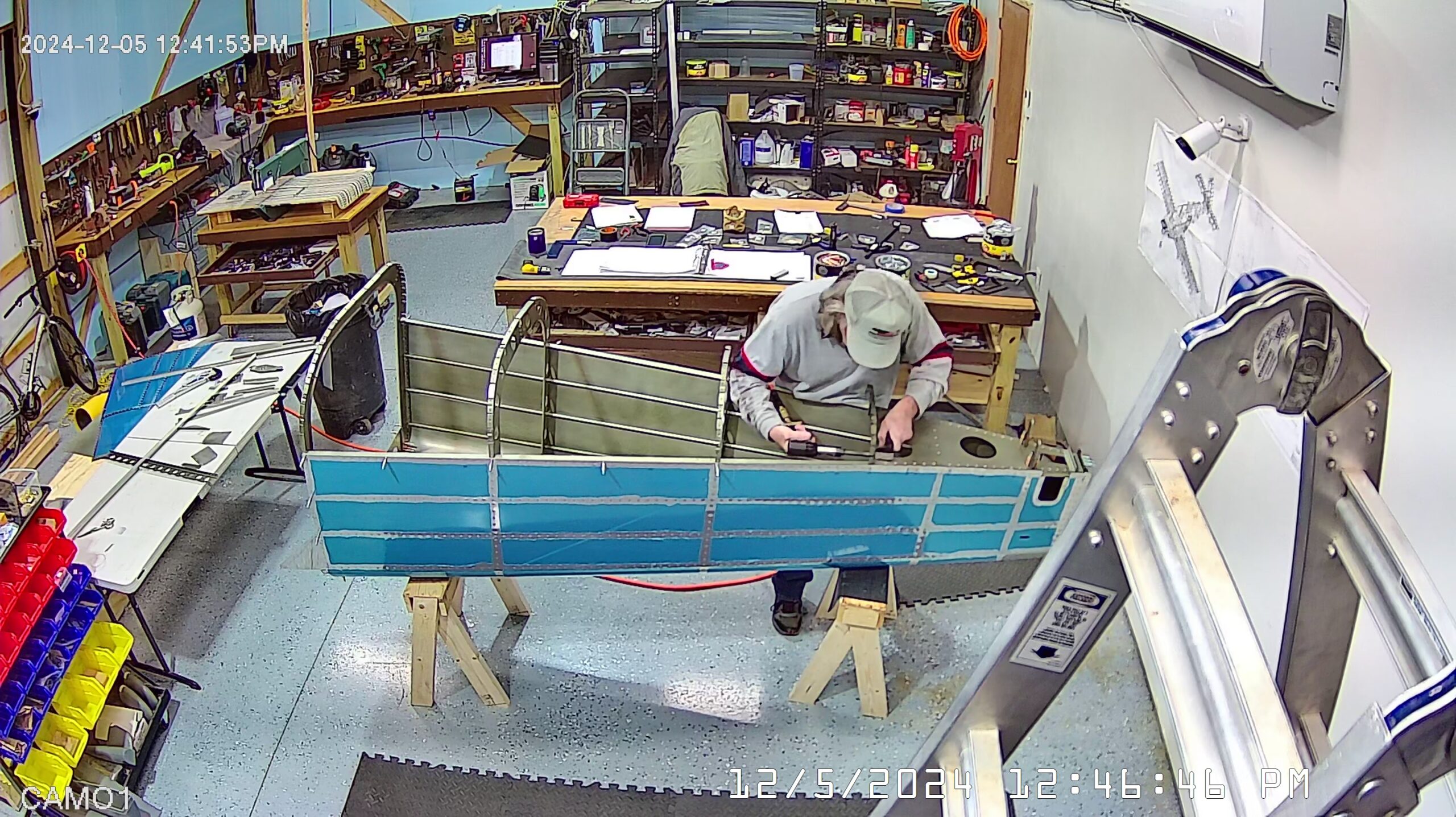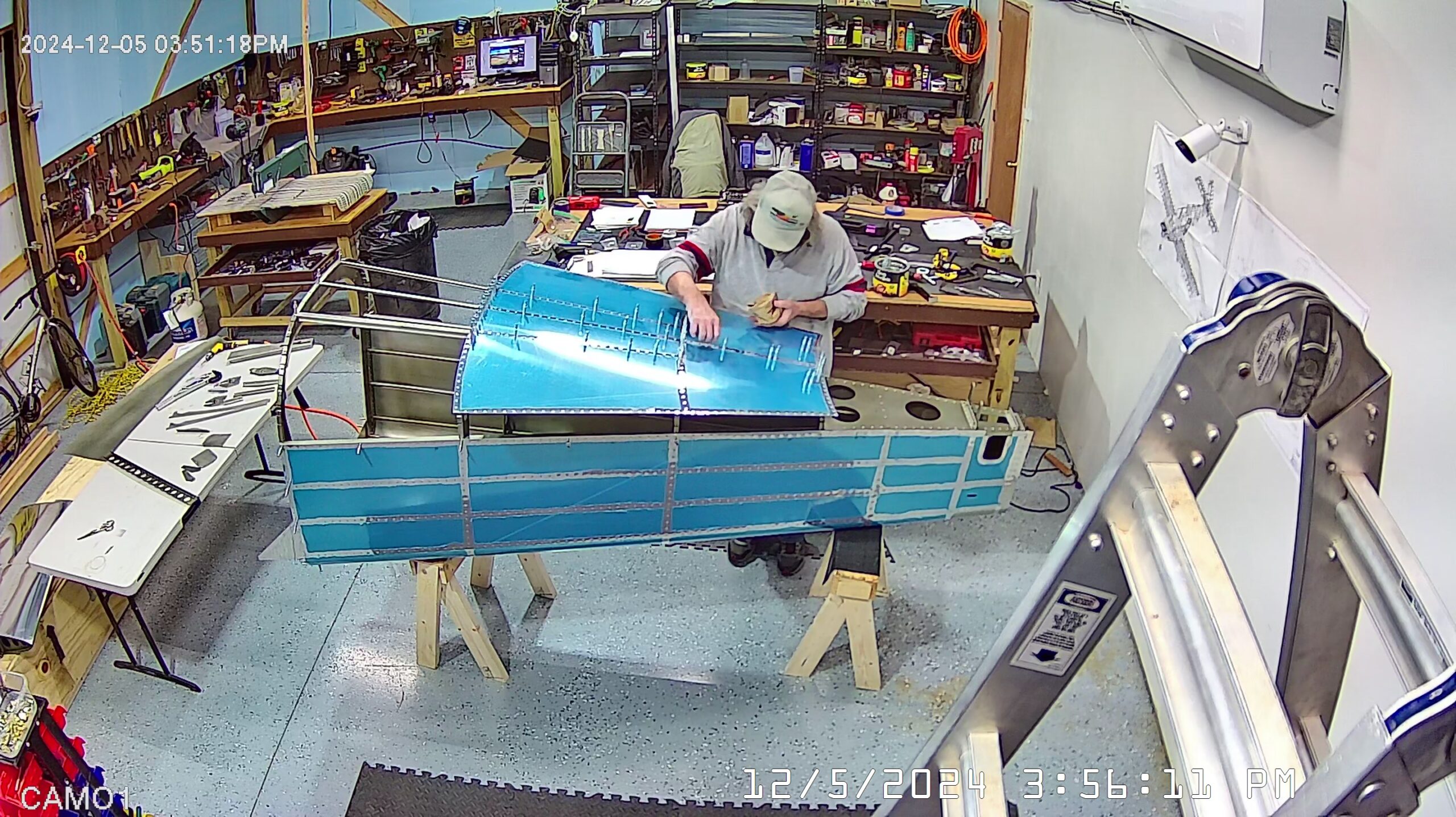 At the end of the day I placed the aft top skin on the frames with a couple of clecos and also had the bellcrank and battery mount installed per the instructions on page 10-23.