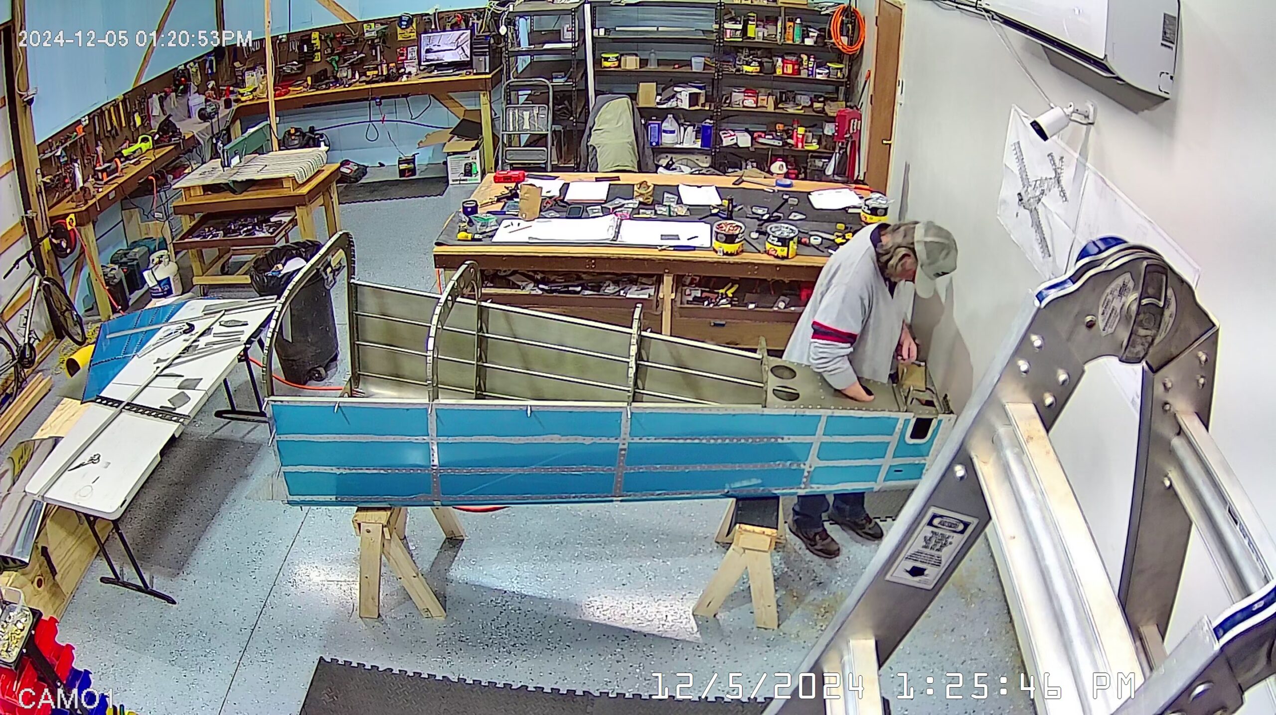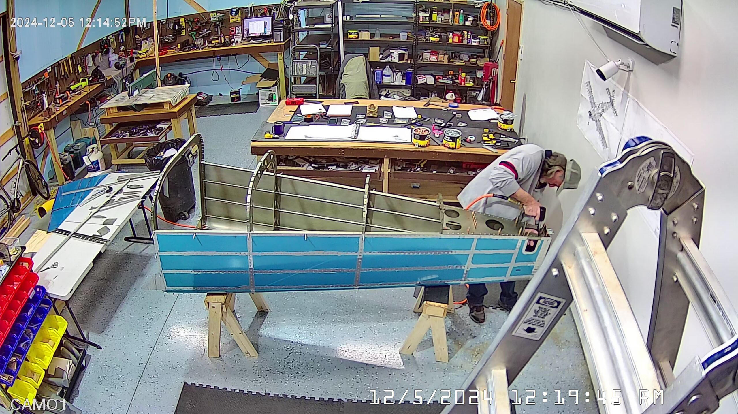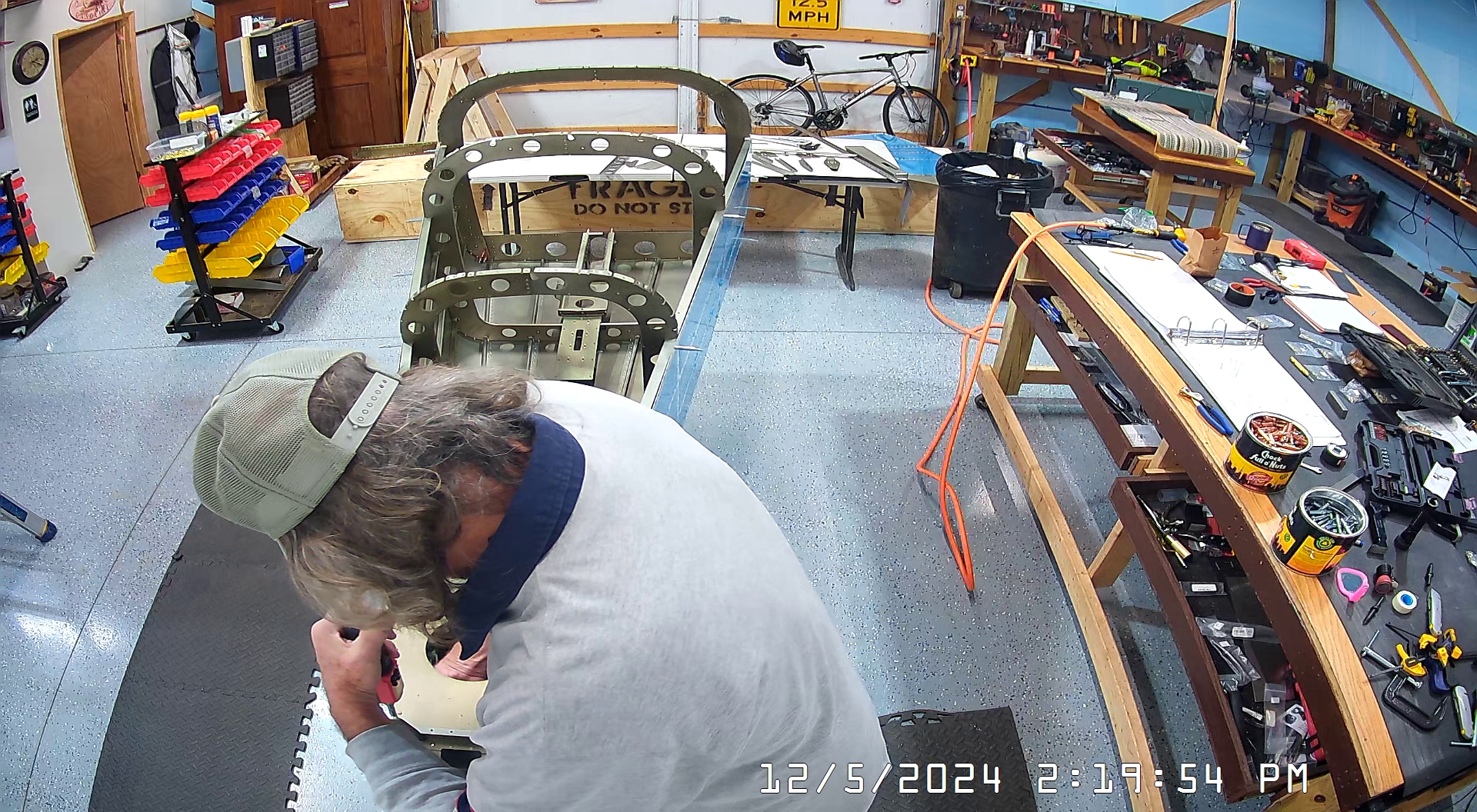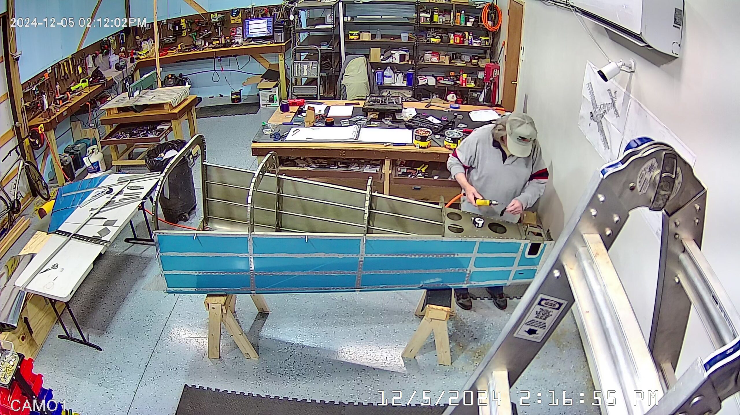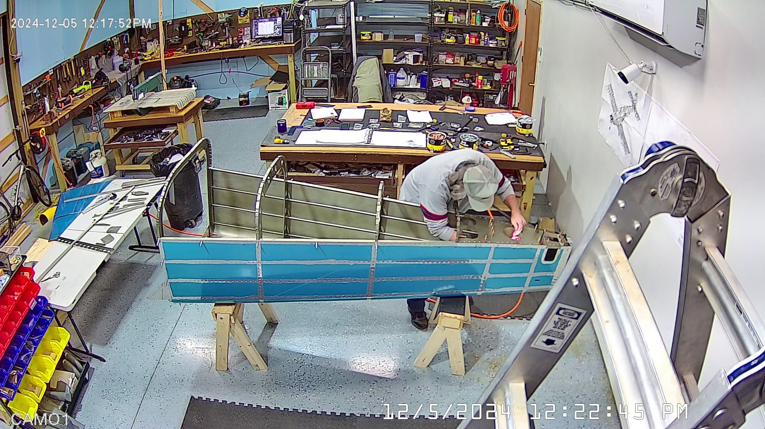 At the end of the day I placed the aft top skin on the frames with a couple of clecos and also had the bellcrank and battery mount installed per the instructions on page 10-23.