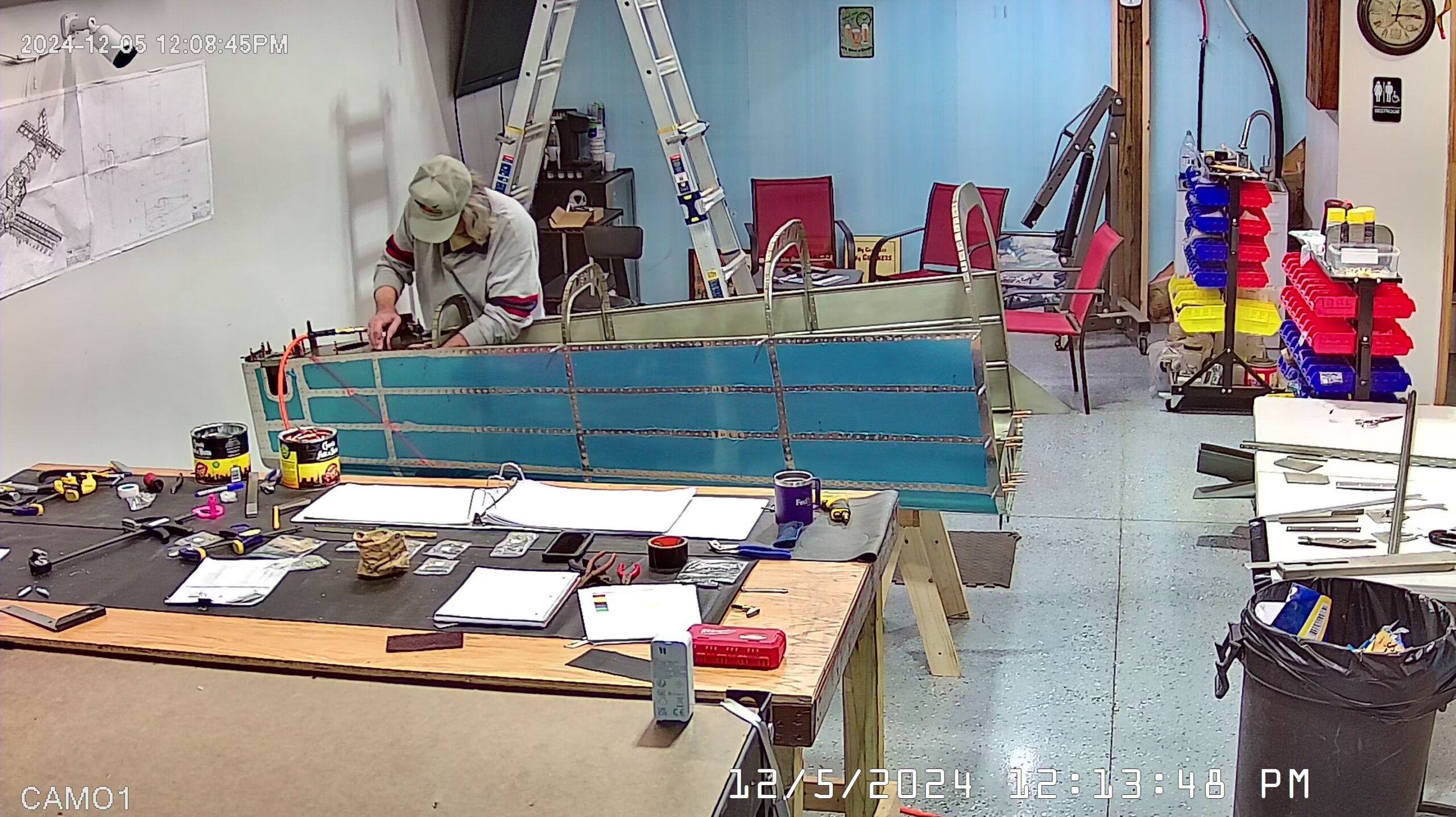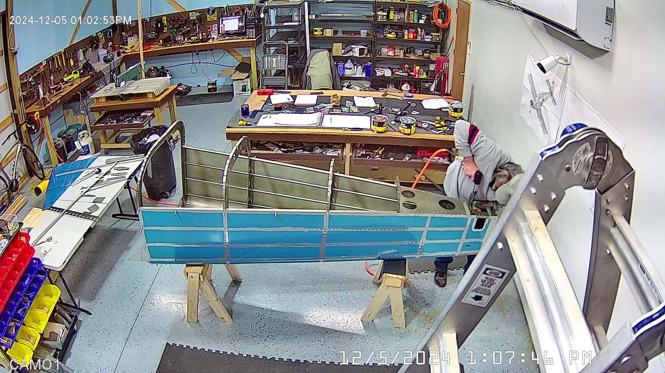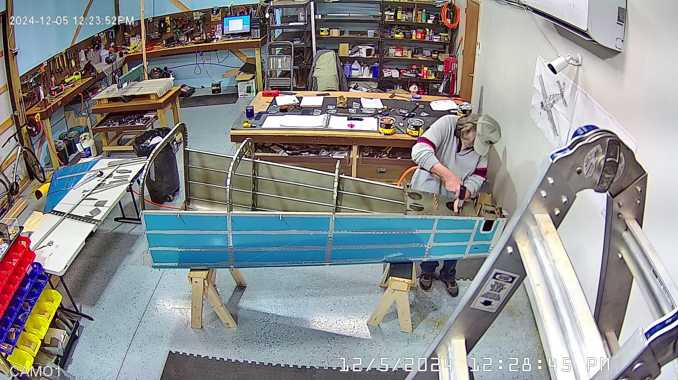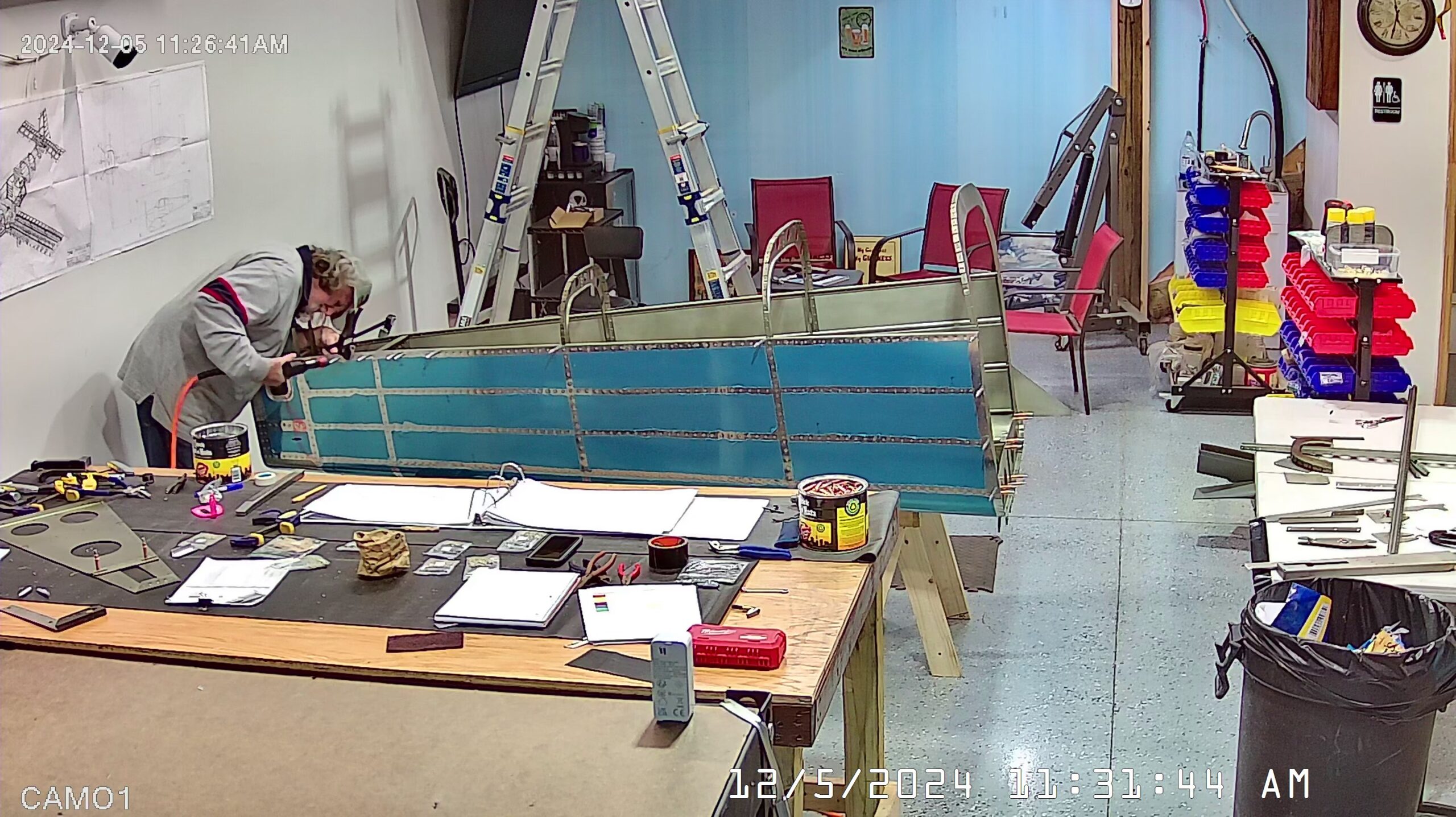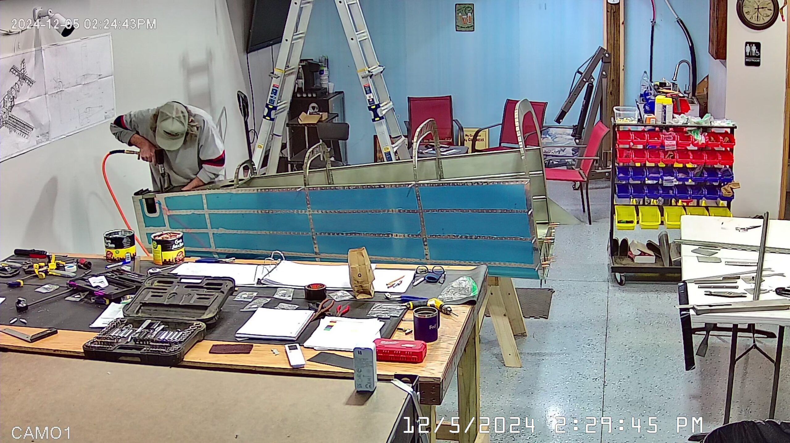 At the end of the day I placed the aft top skin on the frames with a couple of clecos and also had the bellcrank and battery mount installed per the instructions on page 10-23.